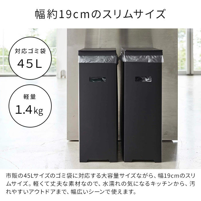 [ スリム蓋付きゴミ箱 タワー 1個 / 2個組 ] ゴミ箱 スリム 四角 タワーシリーズ カットできる ホワイト 大容量 角型 カウンター下 折り畳み式 ふた付き 北欧 シンプル ブラック 45リットル 分別 高さ調節 Yamazaki ごみ箱 山崎実業 tower