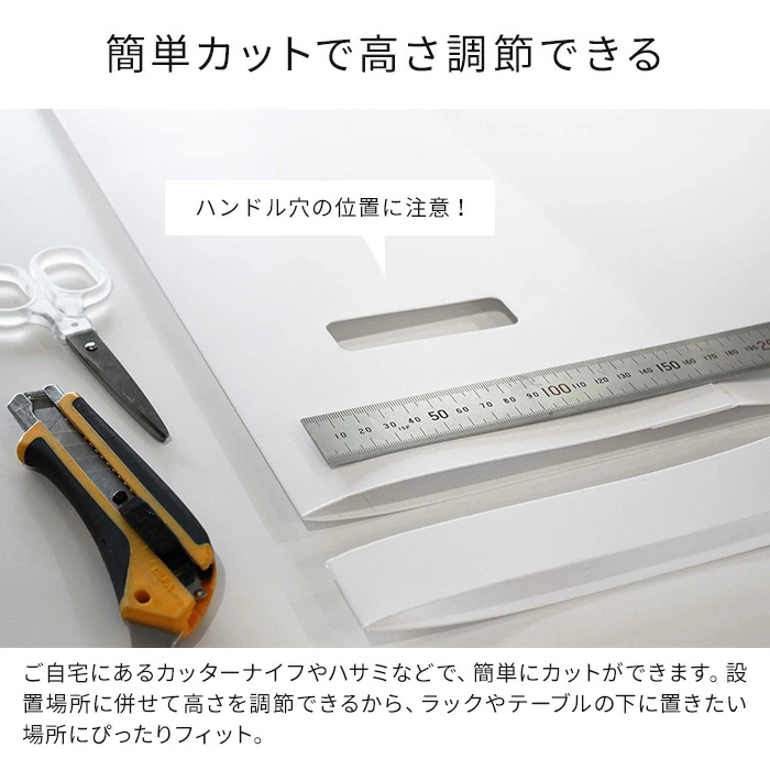 - 設置場所の高さに合わせて、本体の上部をハサミやカッターで自分でカットできるんです!キッチンカウンターの下に置くときなど、高さがピッタリ合うように調整できるのが最高に便利でした。