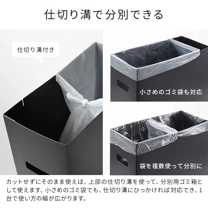 - 45Lはもちろん、30Lや20Lのゴミ袋も使用できるので、引っ越しや生活スタイルの変化で使うゴミ袋のサイズが変わっても、このゴミ箱一台で対応できるのが経済的で嬉しいです。